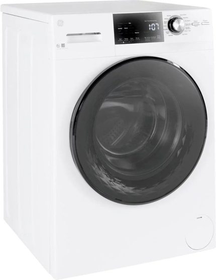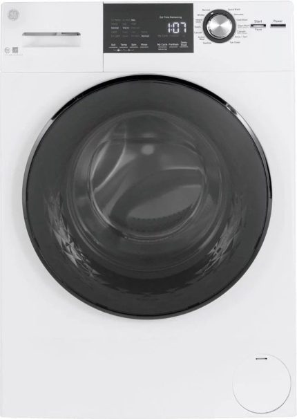 GE – 2.4 Cu. Ft. High Efficiency Stackable Front Load Washer with Steam and Sanitize – White