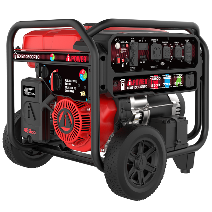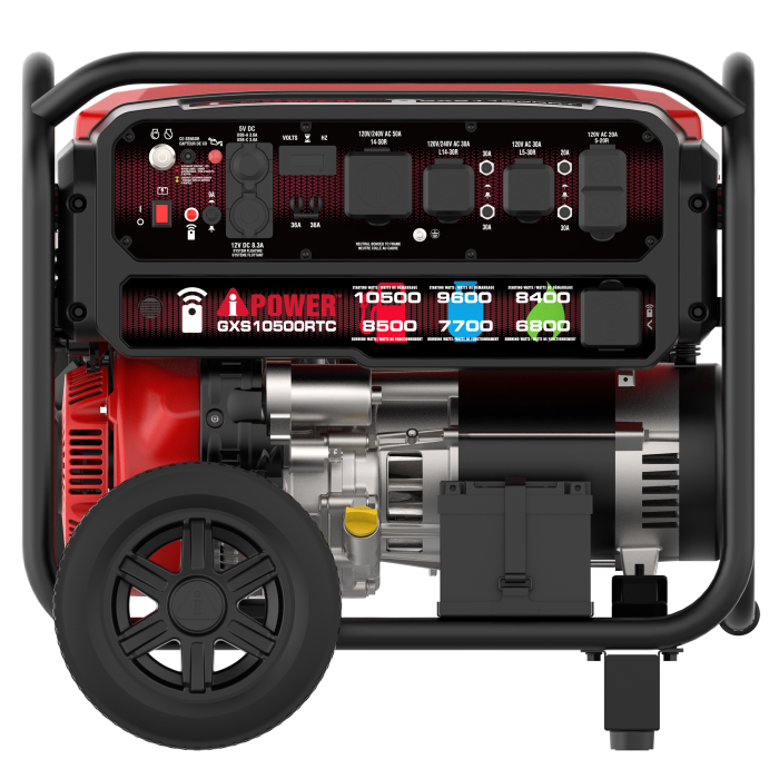With a performance series 459cc OHV engine with cast iron sleeve and low oil shutdown, the A-iPower GXS10500RTC Tri-Fuel Remote Control Generator runs on gasoline, propane, or NG fuels giving you flexibility while out on the road or during an emergency.