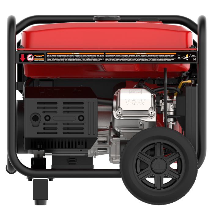 Featuring a portable design that makes it easy to transport with folding handle and wheels, the unit offers 10,500 starting watts with 8,500 running watts on gasoline; 9,600 starting watts with 7,700 running watts on propane; and 8,400 starting watts with 6,800 running watts on NG. The 9.5-gallon fuel tank provides extended run time of up to 18 hours at 25% load.