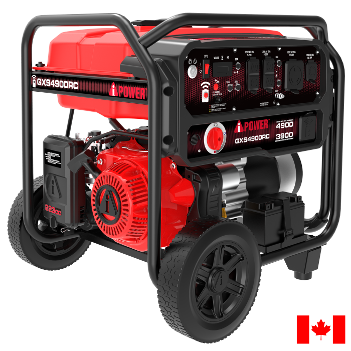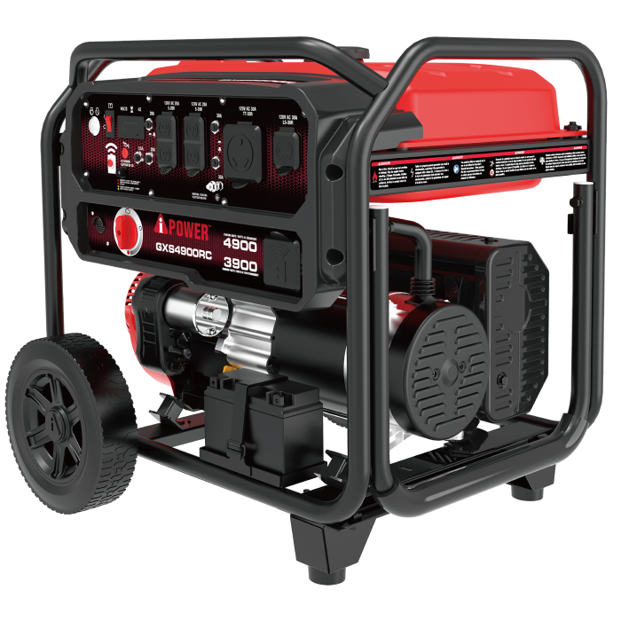 Powered by a performance series 223cc OHV engine with cast iron sleeve and low oil shutdown, the A-iPower Remote Control Generator has 4,900 starting watts and 3,900 running watts. The 6.3-gallon fuel tank offers extended run time of up to 20 hours at 25% load.