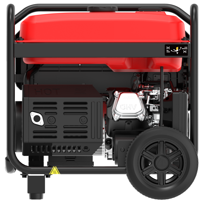 Easy to transport with a folding handle and wheels, the unit’s rubber outlet covers help guard against moisture, dust, and debris, while the CO sensor with auto shutdown monitors and reacts to carbon monoxide (CO) levels. Offering recoil, electric, and remote start capabilities, the digital data center offers quick and easy access to real-time running data.