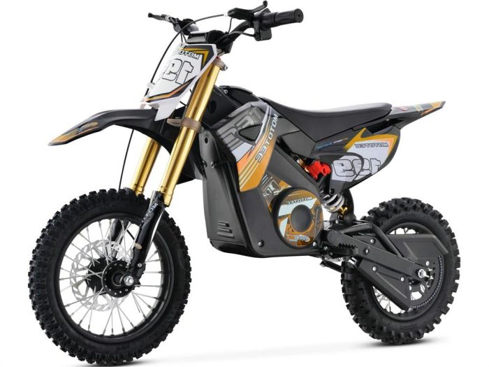 Introducing the new MotoTec 36v 1200w Lithium Pro Electric Dirt Bike! Great for driveway, backyard or dirt track racing. Comes standard with front & rear suspension, front & rear brakes. Three adjustments for Throttle Response, Motor Output Power and Speed. The Lithium battery is substantially lighter, offers more performance and most importantly a longer ride time. In optimum conditions, up to 9 miles per charge.
