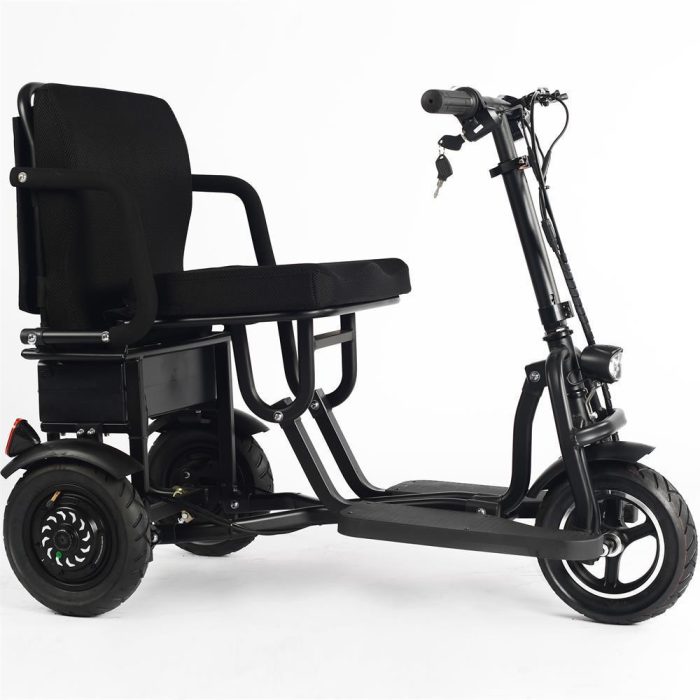 Have no problem with parking and storage. The three-wheeled MotoTec Folding Mobility Electric Trike folds completely into the size of a golf bag, so you can keep it inside for storage. The folded frame has wheels so you can just roll it around. What a great design!