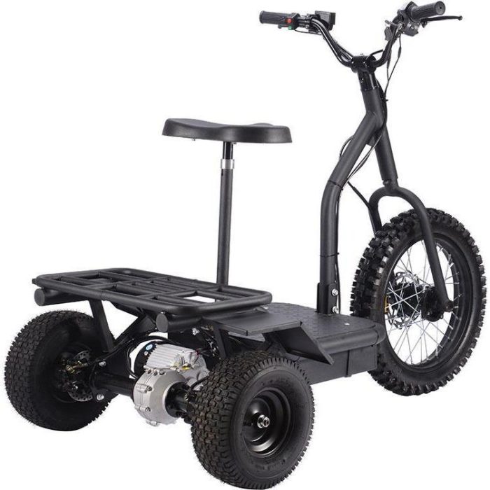 Enjoy excellent comfort whether you ride it standing or sitting. The MotoTec Transportation 3-Wheel Mobility Scooter comes with a padded mini-saddle and adjustable-height handlebars. In addition, the footrest is spacious that allows you to stand comfortably. There is a small metal luggage rack on the rear for your bags, too.