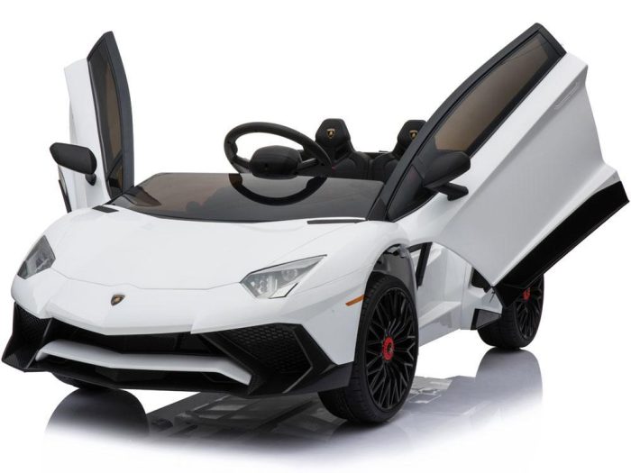 Cruise in style with the Mini Moto 12v Lamborghini, be the most popular kid in the neighborhood! Features Include Opening Wing Doors, 2.4ghz Remote Control, EVA Tires, Leather Seat, Push Button Start, USB, TF Card Socket, MP3 Port, Radio, Seat Belt, 4 Wheel Suspension and Working Lights.