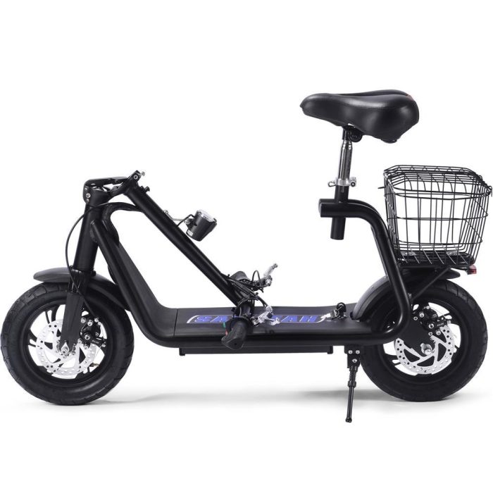 Introducing the MotoTec Metro 36v 500w Electric Scooter, the ultimate commuter ride. Powered by a 36 volt 12ah Lithium Battery pack and a 500 watt brushless motor. Comes standard with large 12 inch pneumatic tires, foldable handlebars, LED headlight & taillight, front and rear disk brakes with carrying rack.