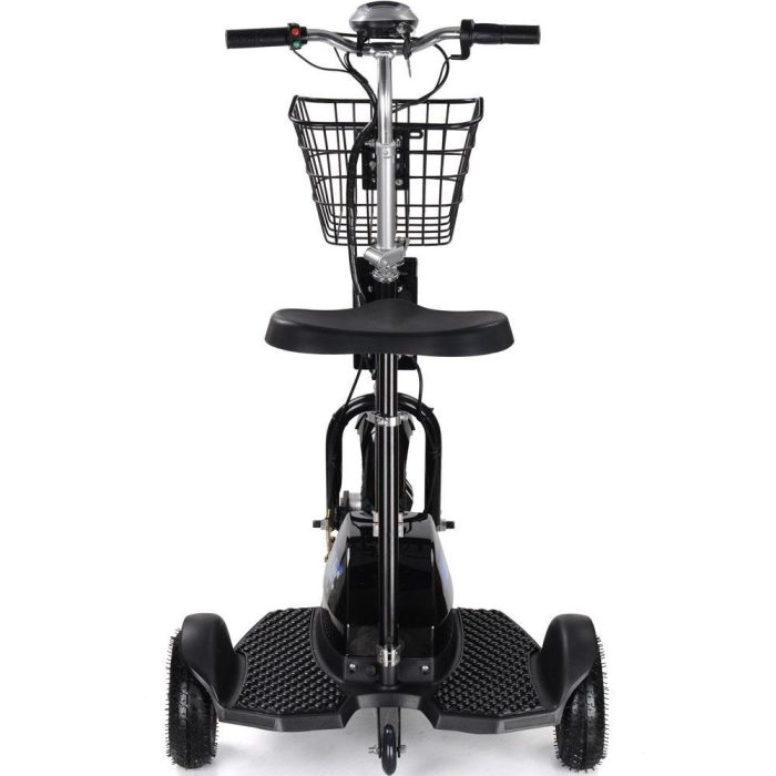 The MotoTec MT-TRK-500 Electric Trike 48v 500w aka Personal Transporter is a three-wheel electric scooter that you can ride while sitting or standing, this makes it very convenient for use at events, security, and warehouse floor operations or for just plain fun! It’s like a three-wheel Segway but at a fraction of the price! Powered by a 500-watt front wheel. It can achieve a 20 plus mile range on a full charge. It features a 16″ pneumatic front tire, two 9″ pneumatic rear tires, and a removable seat. This personal transporter is easy-to-operate with a twist throttle and left handle front drum brake system. The MotoTec MT-TRK-500 Electric Trike 48v 500wComes standard with a key, battery meter light, front LED headlight, and carrying basket.