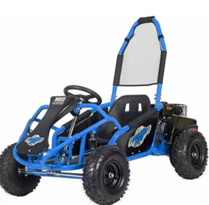 Introducing the new MotoTec Mud Monster 98cc 4-stroke Kids Off Road Go Kart with Full Suspension! Featuring a powerful 98cc 4-Stroke OHV Engine (EPA & CARB approved for California Sale), roll cage safety bar, positraction, metal throttle/brake pedals, adjustable seat, more leg room than the competition and seat belt. This go kart is rugged and built to last.