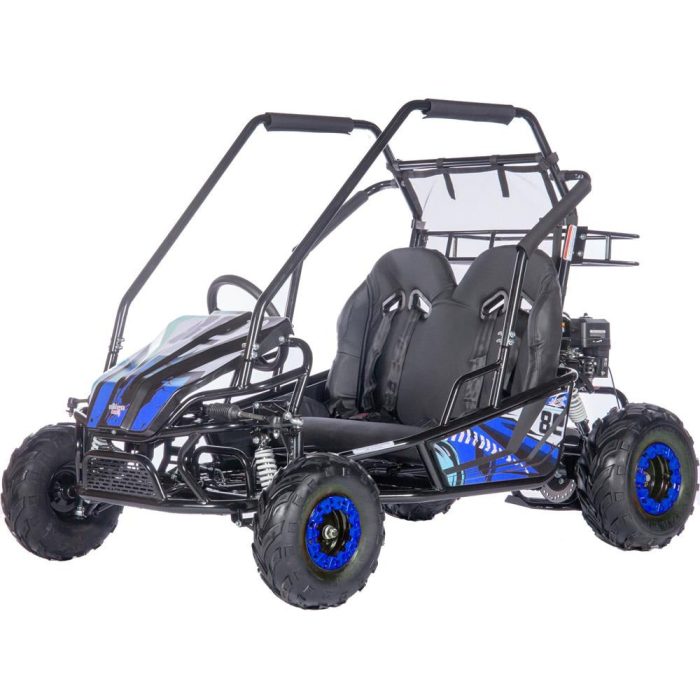 Introducing the new MotoTec Mud Monster XL 212cc 4-stroke 2 Seat Kids Off Road Go Kart with Front and Rear Suspension! Featuring a powerful 212cc 4-Stroke OHV Engine, padded roll cage safety bar, positraction, metal throttle/brake pedals, adjustable seat, more seating room than the competition and four-point safety harness. This go kart is rugged and built to last. Comes with easy pull start system, CVT torque converter, rear storage rack, low pressure tires for excellent grip and ride comfort.