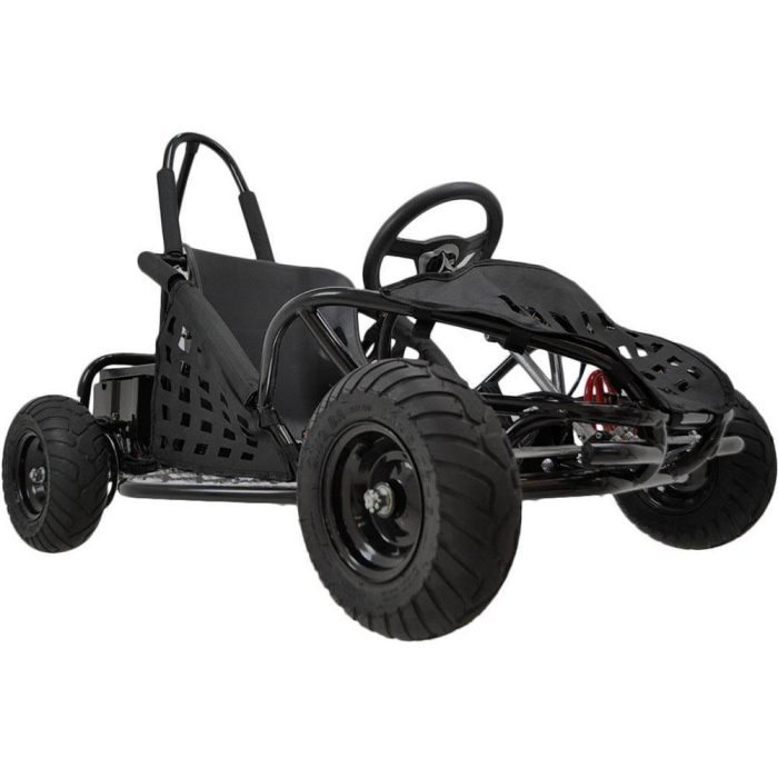 • The MotoTec Off Road Electric Go Kart is an excellent choice if you are looking for an exciting ride that is usable on the road and on dirt. It is capable of off-roading, and therefore perfect for kids that need a fun electric ride at an affordable price. The Off Road features a true go-kart design with a rigid frame and off-road knobby tires. This affordable and compact go kart comes with a heavy-duty metal full roll cage with safety bars and a beefy motor to match. This kart is highly recommended for leisure and a quick personal transport to work and school.