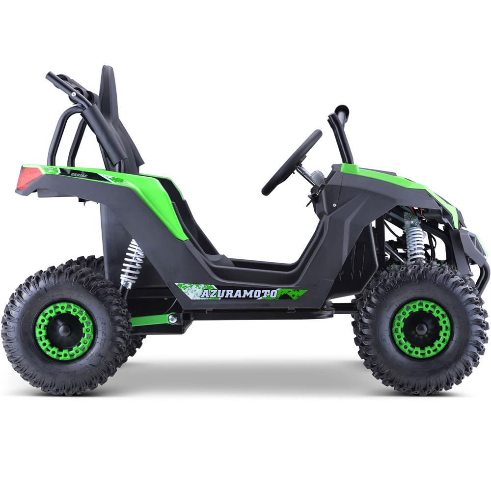 Introducing the new MotoTec Raider 48v 1200w Electric Kids Off Road UTV with Full Suspension! Featuring a powerful 48 volt 1200 watt shaft drive motor, forward & reverse, two speeds, roll cage safety bar, metal throttle/brake pedals, adjustable seat, more leg room than the competition and seat belt. This UTV is rugged and built to last.