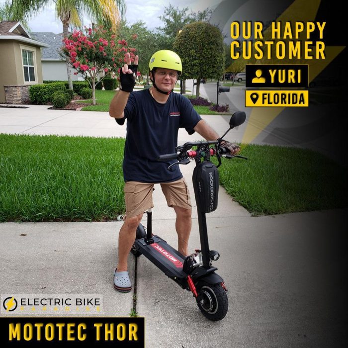 • The MotoTec Thor Scooter is an excellent choice if you are looking for an exciting ride that will fulfill your need for speed but not occupy space. It is perfect for adults and big kids that need a fun electric ride at an affordable price. The Thor is the only scooter in the market with a true off-road capability and two electric motors. This affordable and ultra-compact scooter comes with a heavy-duty metal frame and a beefy motor to match. This scooter is highly recommended for leisure and quick personal transport to work and school. You can also use it to reach destinations in the city or suburbs.