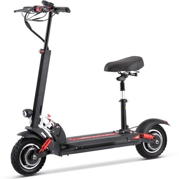 Introducing the new MotoTec Thor 60v 2400w Lithium Electric Scooter with Dual Motors! Comes standard with adjustable handlebars, dual front & rear suspension, foldable frame, front & rear disc brakes, LCD panel with speedometer, odometer, cruise control, usb charging socket and 9 adjustable speeds. Dual hub motors allow you to tackle any terrain, this is our most powerful scooter and it does not disappoint!