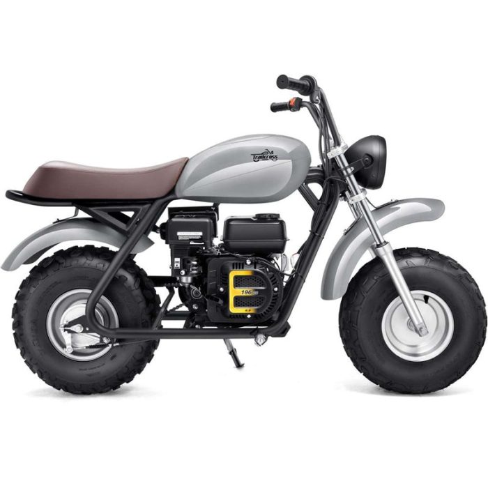 Just like the ones your parents used to drive, only safer and easier to use. Powered by a 200cc 6.5HP overhead valve 4-stroke engine(no need to mix gas and oil) and an automatic clutch to ensure easy operation. With it’s rugged steel frame and no-dent fenders, this mini bike is built tough to handle the roughest of terrain.