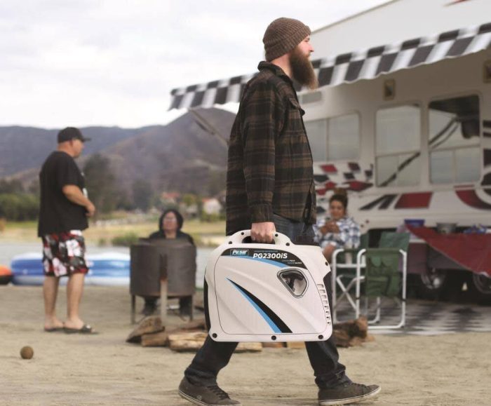 Pulsar’s PG2300is portable inverter generator is a prime choice for clean power and optimal portability. Its single cylinder, 4-stroke, OHV engine produces 2,300 peak watts/1,800 running watts of power and generates just 59 dB of sound, making it virtually silent from just 10 ft. away. Parallel capability allows you to run 2 PG2300is generators in tandem with the use of an adapter (sold separately) to effectively increase power output without the hassle that comes along with having a much larger unit. The handy suitcase design is both durable and compact and weighs only 47 lbs., giving you the freedom to take the PG2300is anywhere with ease.