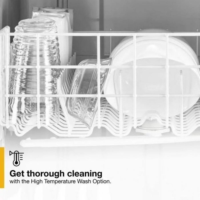 - High temperature wash option gives items like baby bottles, glassware or dishes a more thorough clean