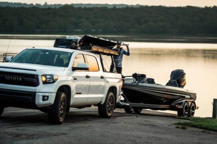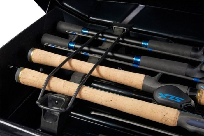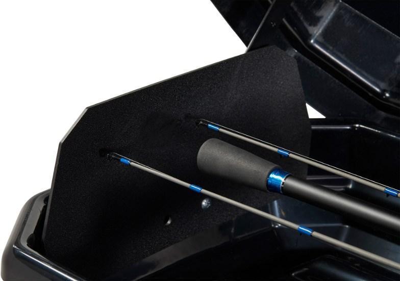 • Space below the rods is perfect for low-profile tackle boxes and other gear.