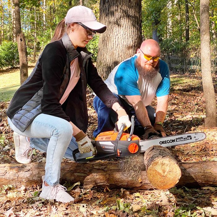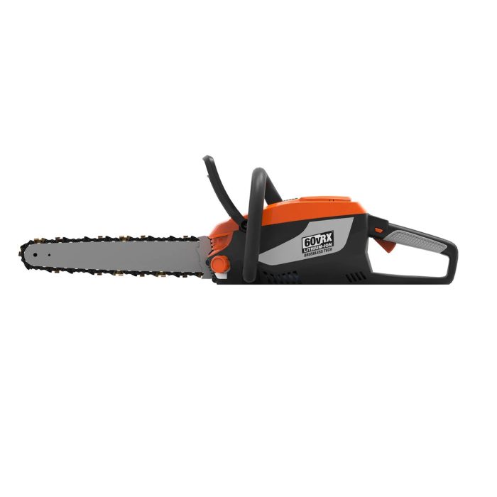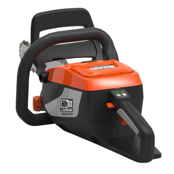 The Yard Force YF60VRX 16″ chainsaw has the power and performance to cut hard and soft wood with the performance of a gas-powered chainsaw and the convenience of a lithium-ion battery. Starting and stopping is quick and easy with the push-button control on the top of the handle. The Oregon bar and chain are manufactured to exacting specifications using the highest quality materials. Features an automatic chain and bar oiler for convenience and extended life.