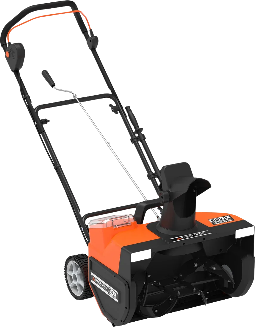 The Yard Force YF60VRX Snow Blower is packed with power to clear driveways, sidewalks, and patios. It features a 22″ clearing path and cuts through up to 10″ of snow with ease. The powerful 60v Li-ion battery produces up to 30 minutes of runtime on a full charge. The discharge chute rotates 180° for directional control and can discharge up to 20′ in distance. Powerful 3-watt LED headlight provides increased visibility for nighttime snow removal.